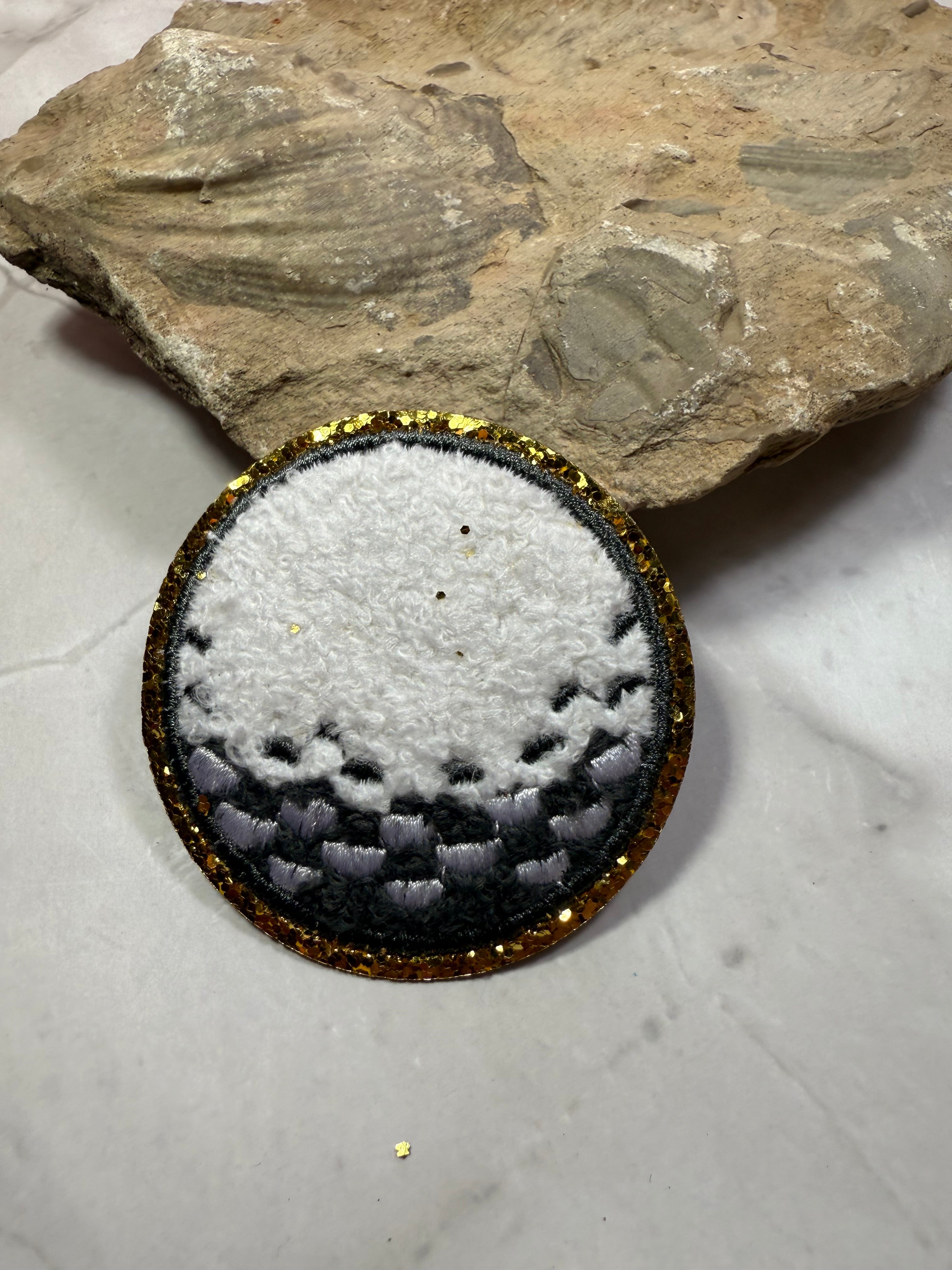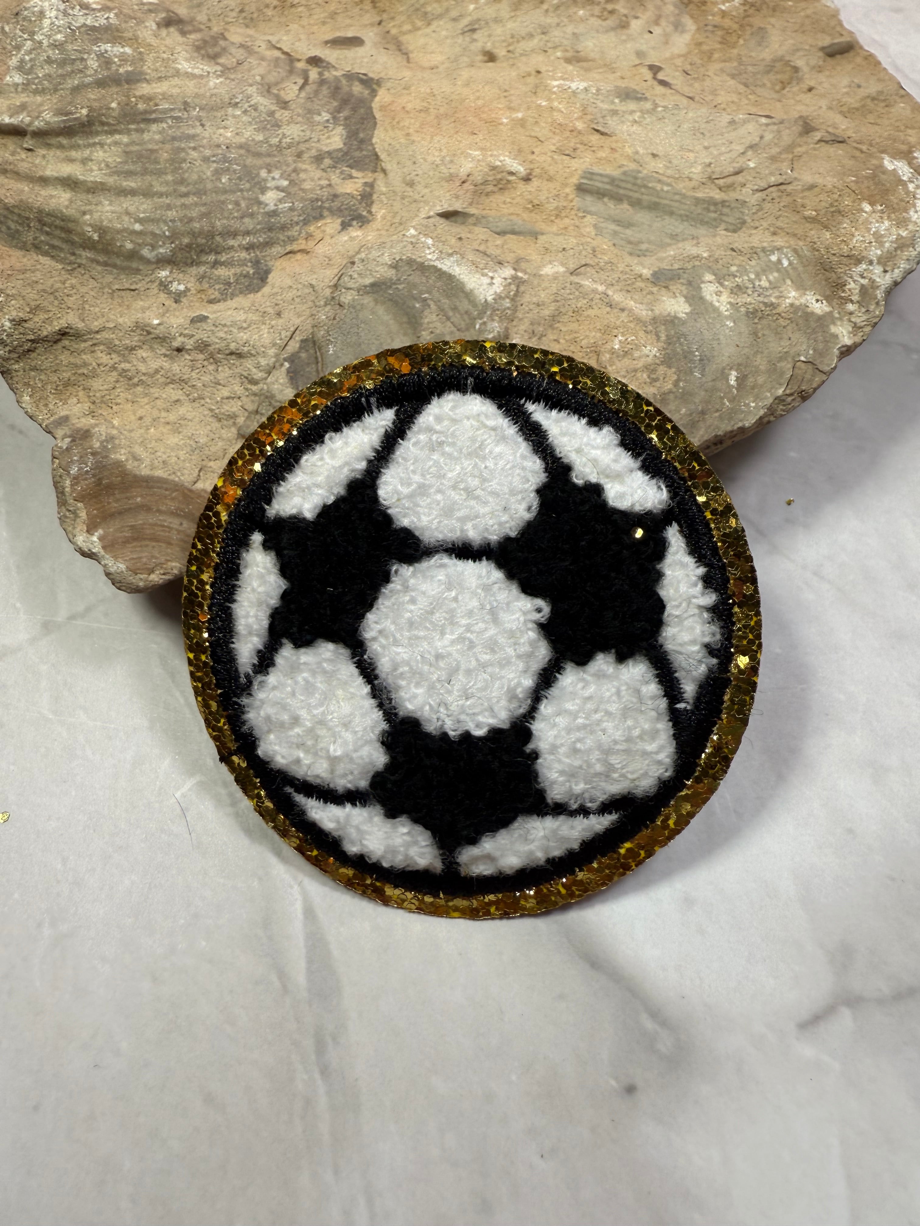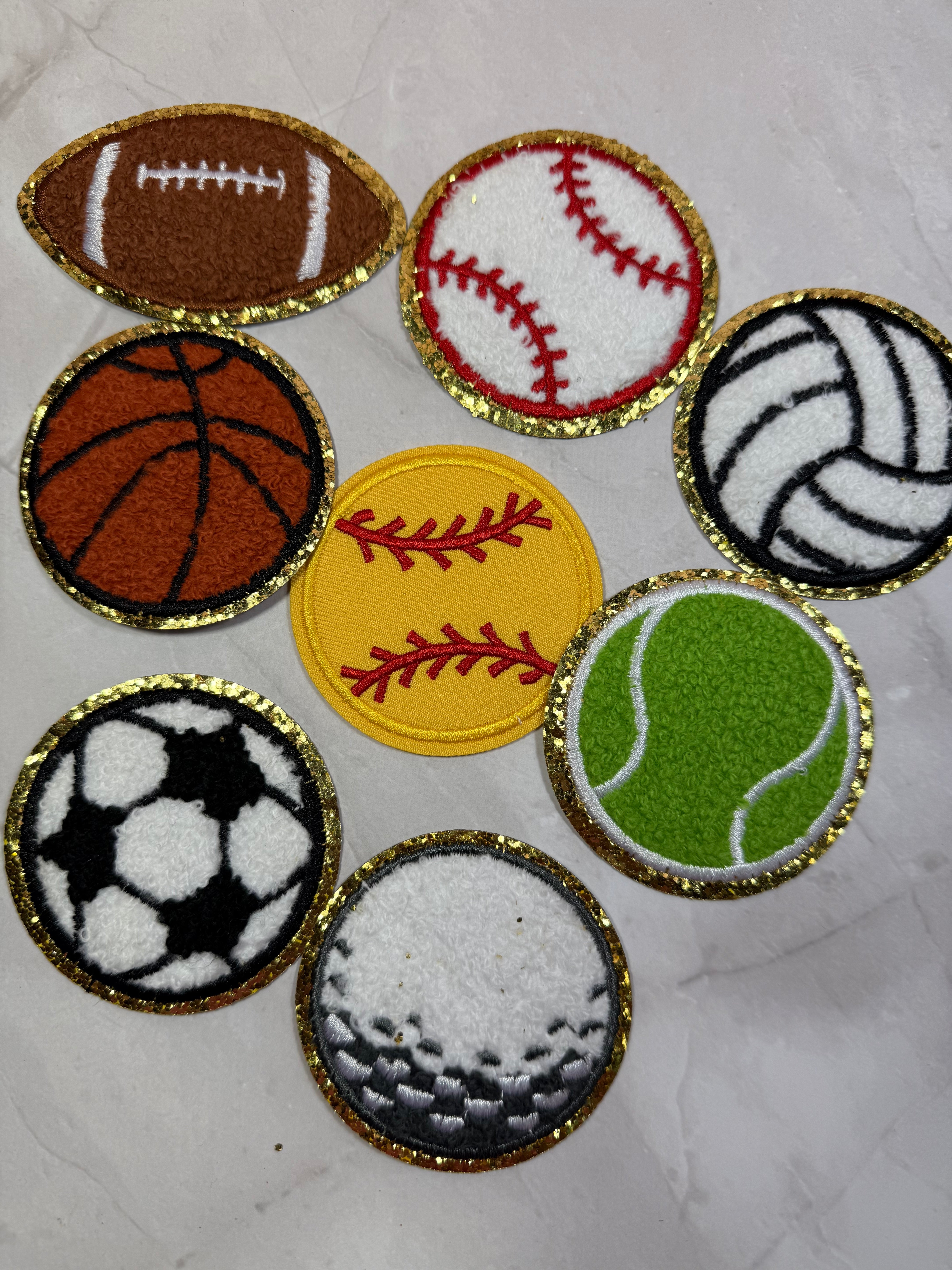 Chenille sports patches of many different kinds! Outlined with a gold edge!