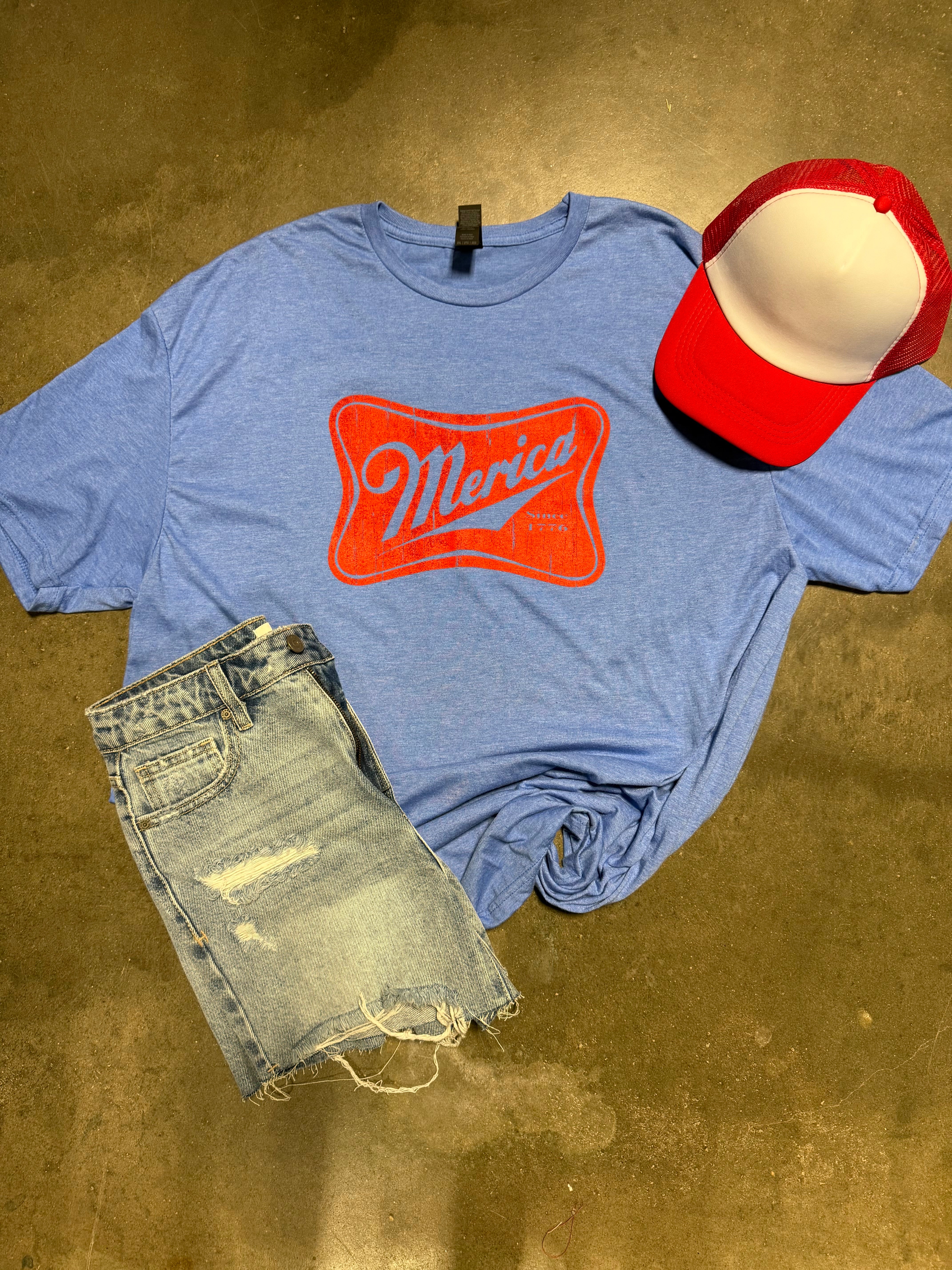 Unleash your patriotism with our Merica shirt on a comfy Gildan Soft Style tee. This quirky tee in red and blue is perfect for celebrating the Fourth of July. Represent your love for the country in style. True to size while slightly fitted.