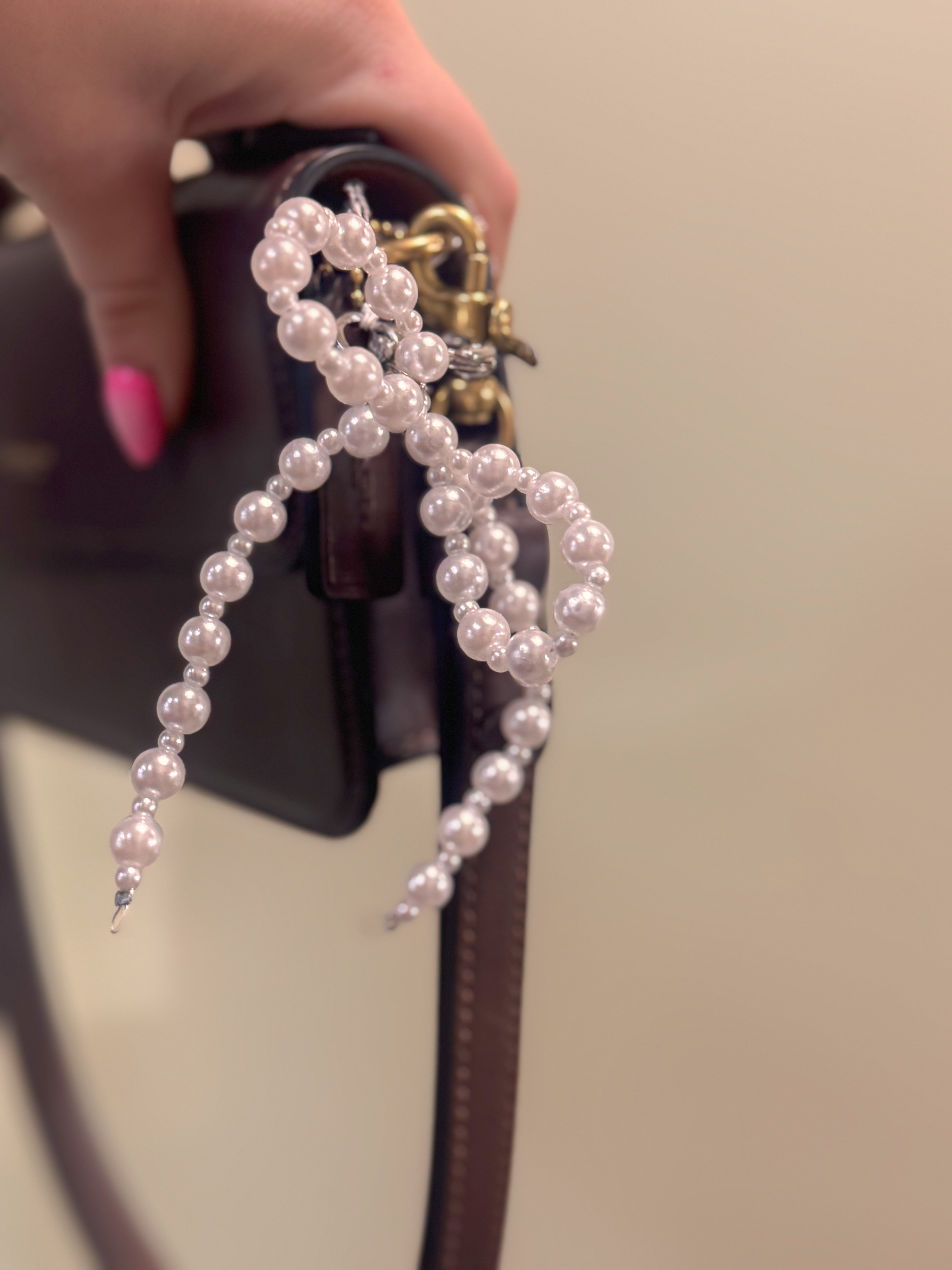 Add a subtle, feminine touch to any bag with the Dainty Bow Purse Charm. Featuring a petite bow with delicate pearl accents, this charming accessory elevates your favorite tote, crossbody, or purse. It also doubles as a keychain, making it a versatile and stylish addition to your everyday carry.