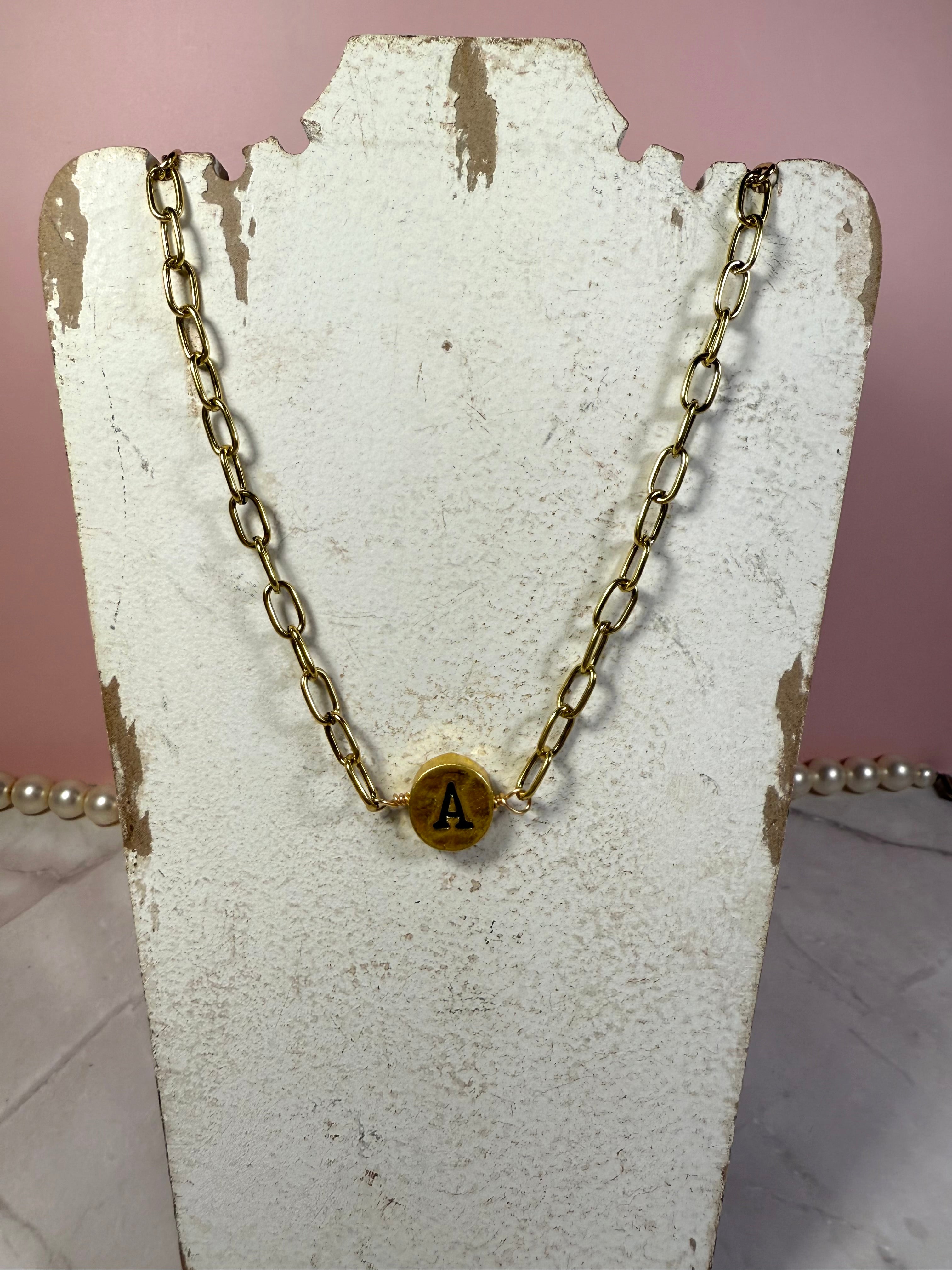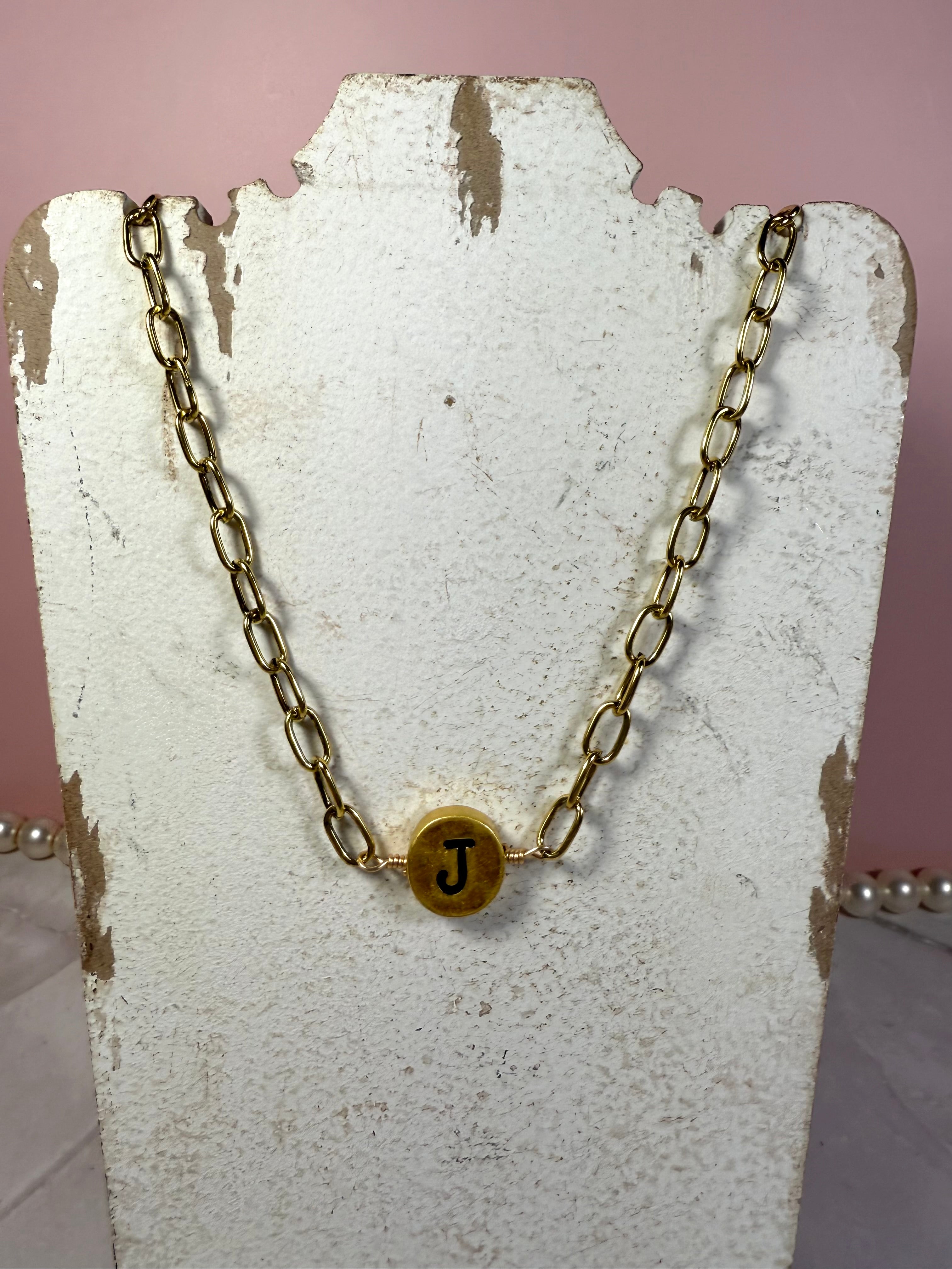 Add some vintage charm to your style with our Golden Initial Necklaces! Featuring a trendy chainlink design, these necklaces have a retro vibe that will elevate any outfit. (And they make a great gift idea, just saying.)
