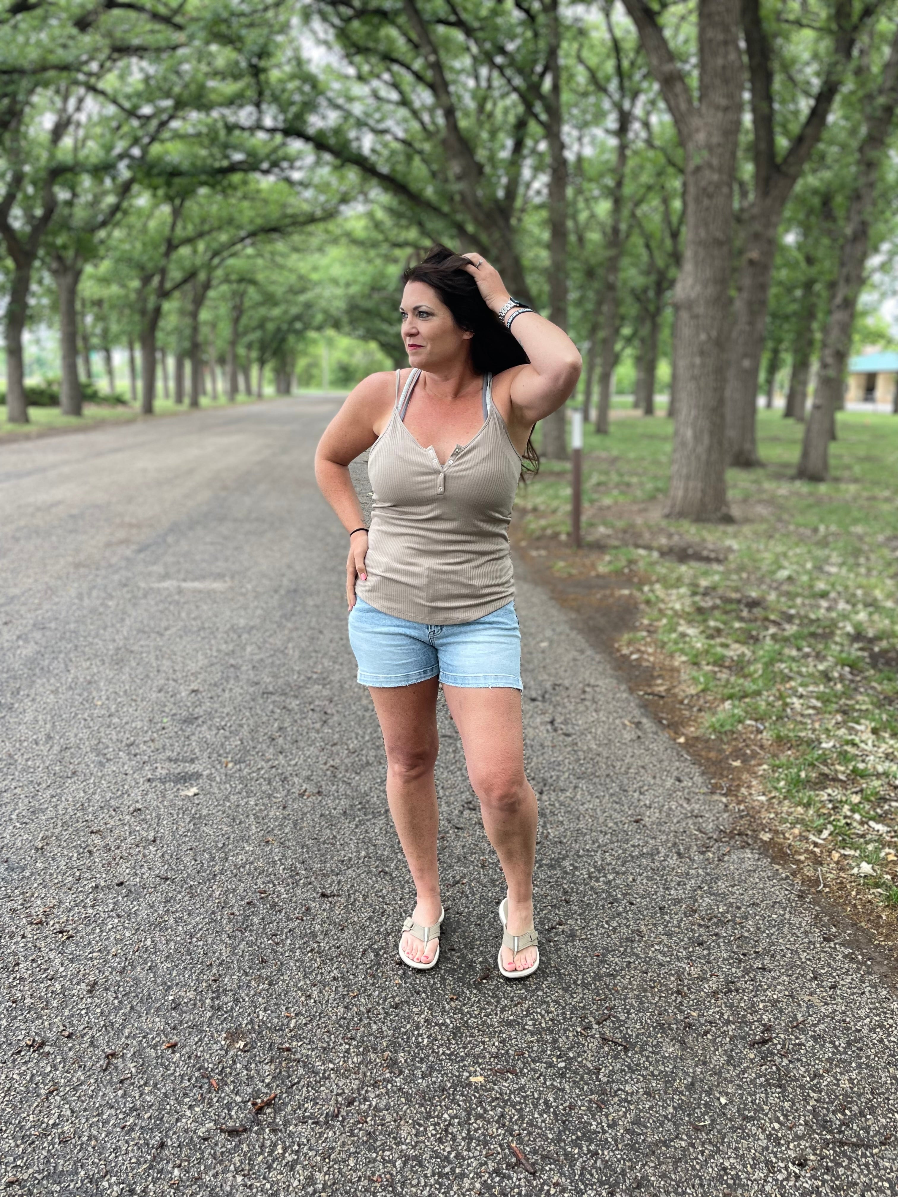 We have just the item you're looking for - a ribbed half snap button closure cami top. This top is made of a ribbed fabric for added texture and style, and features a snap button closure down the front for a secure fit. It's the perfect addition to any wardrobe!