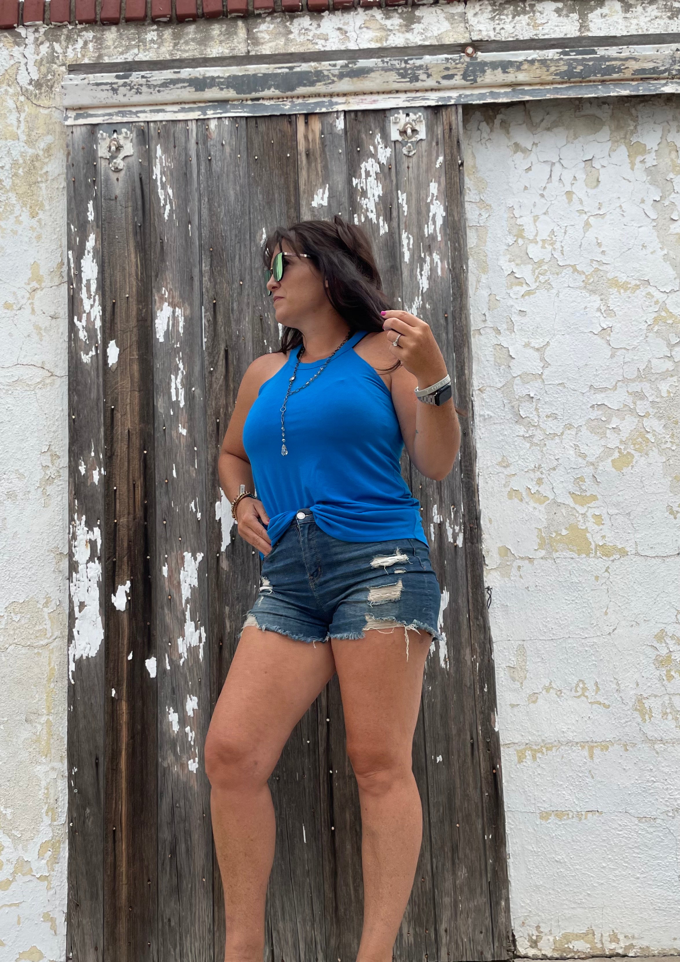 Be cool and comfortable in the Rocker Tank Bright Blue, crafted from a blend of 57% polyester, 38% rayon and 5% spandex for an optimal fit. The longer bodice ensures a perfect fit that stays true to size.
