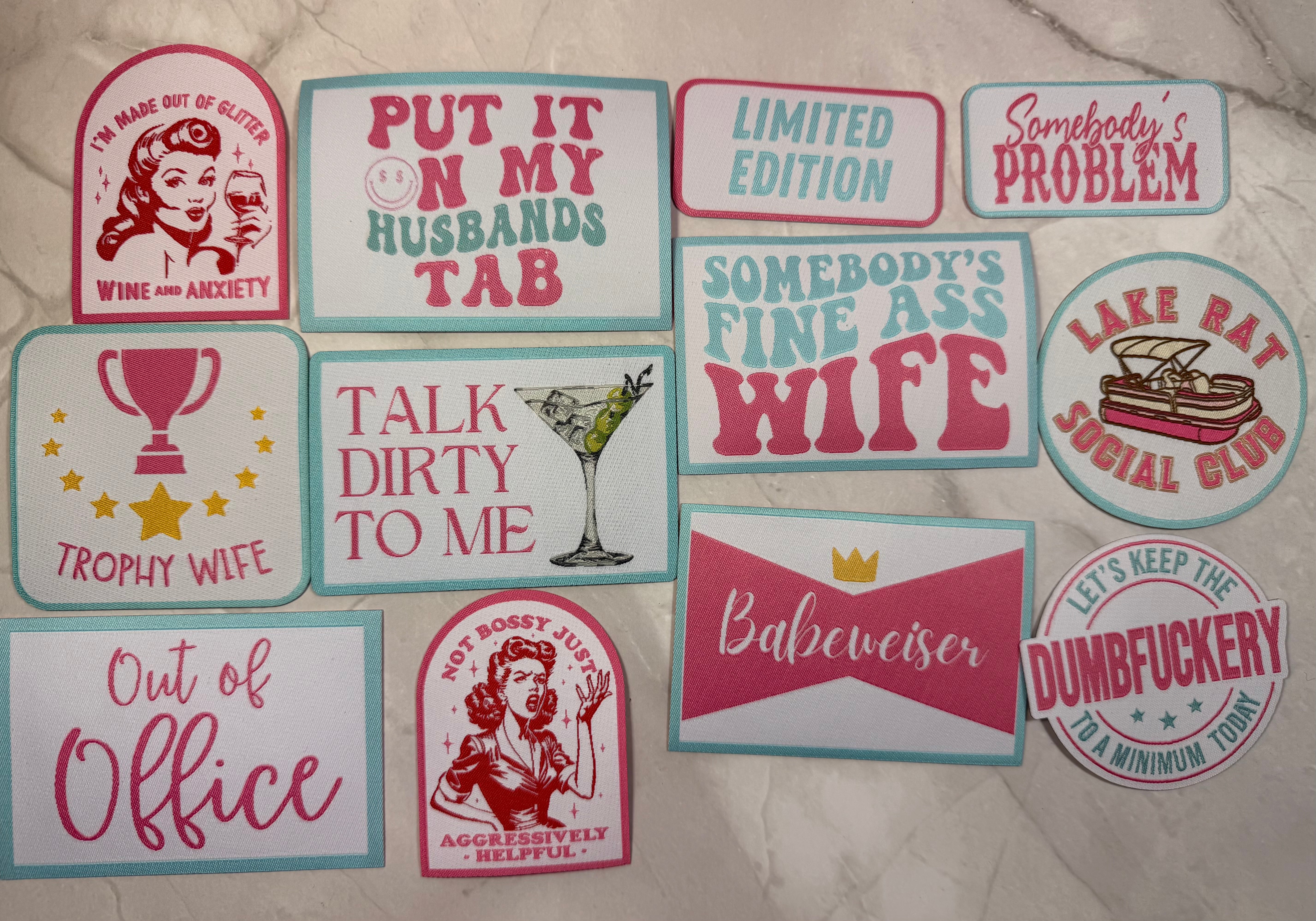 Add any of these patches from our hat bar to our trucker hats or baseball hats for the perfect look!